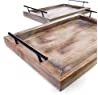 Wooden Serving Trays with Handles (2 Pc. Set) Rustic Color, Farmhouse Wood Butler Platters | Serve Breakfast, Appetizer, Coffee, Bar, and Food | Party or Display Use (Rustic) | Bison Home Goods